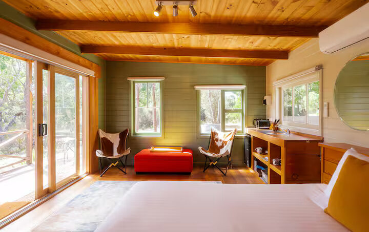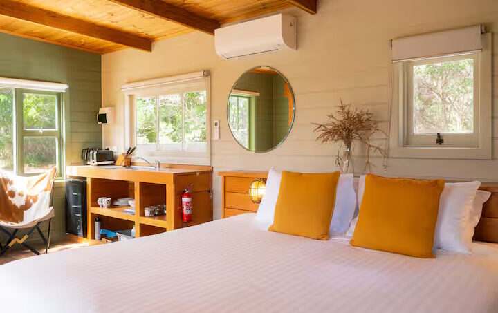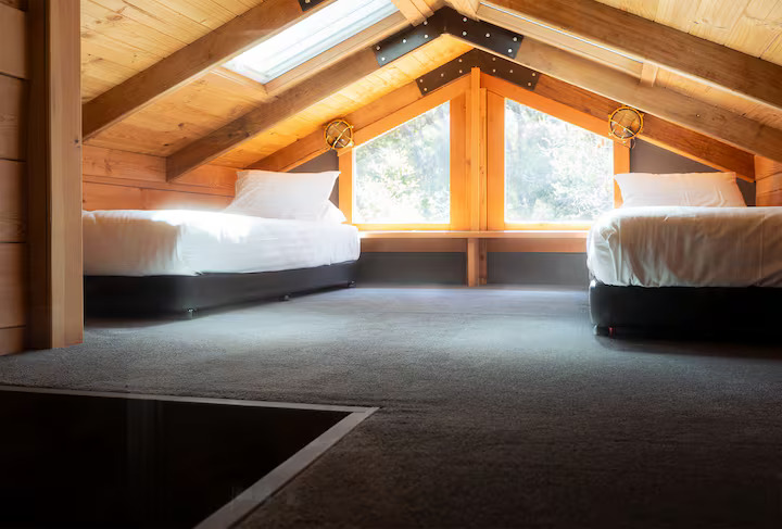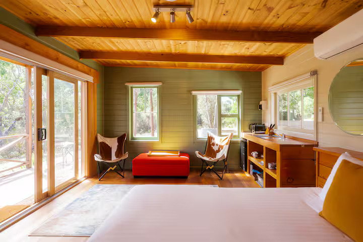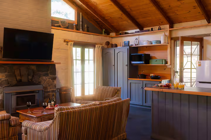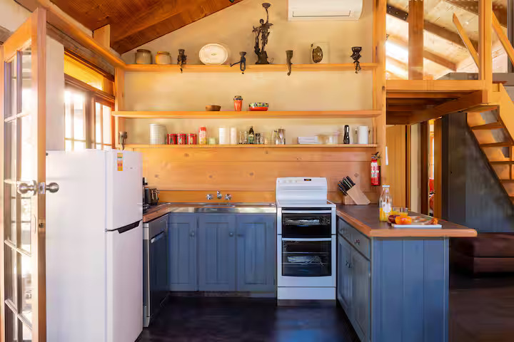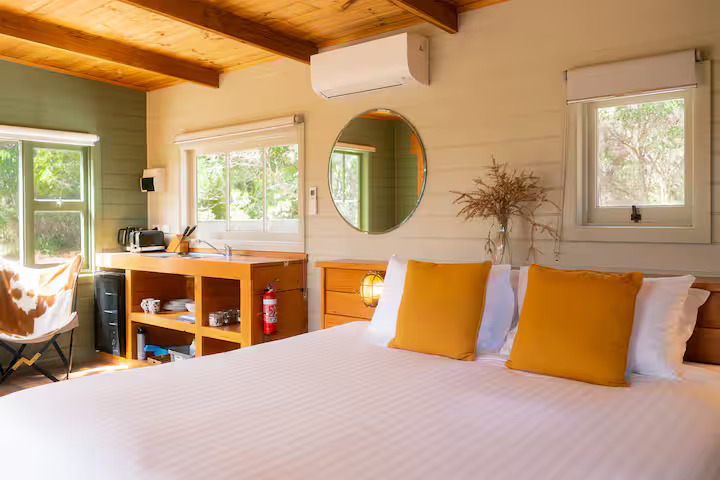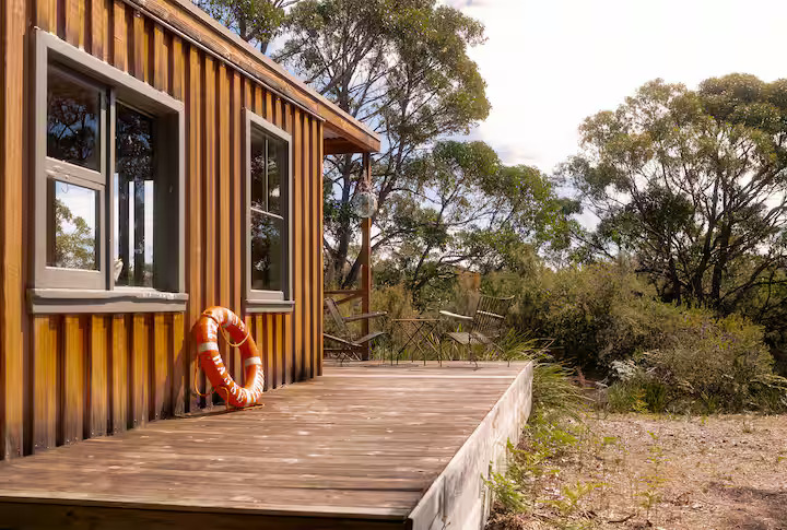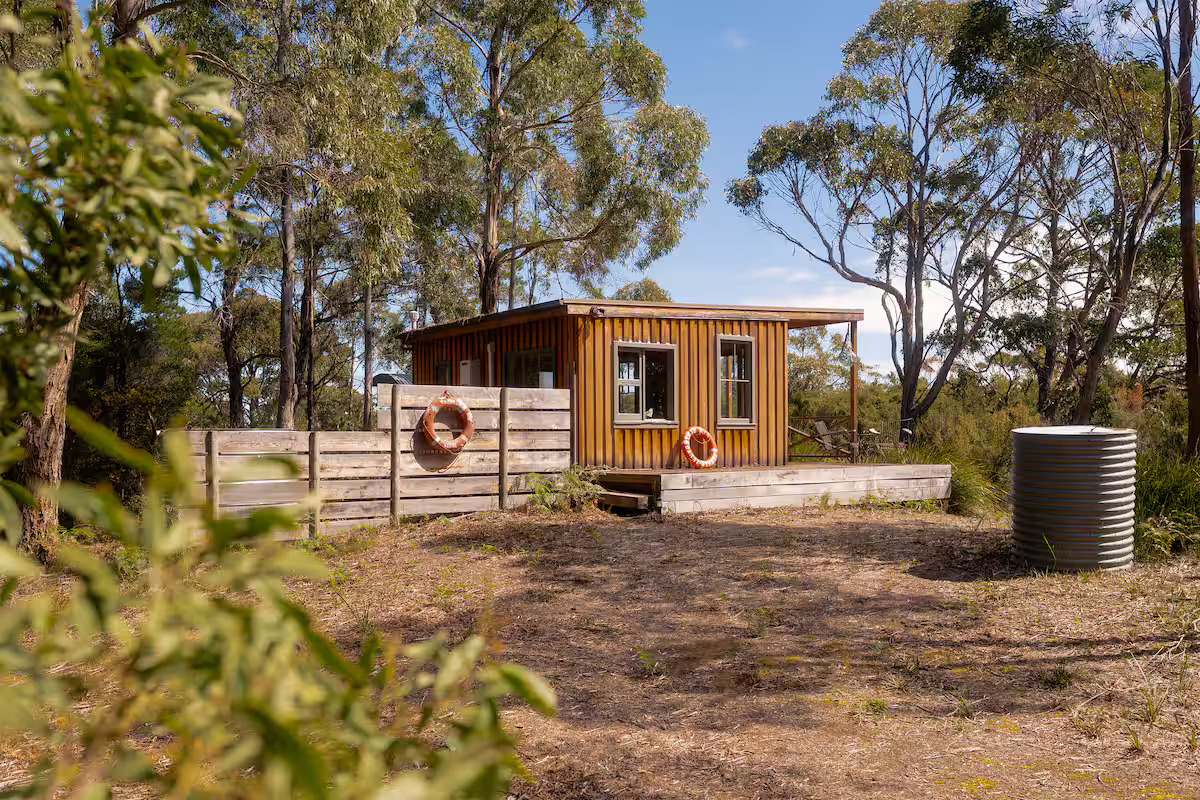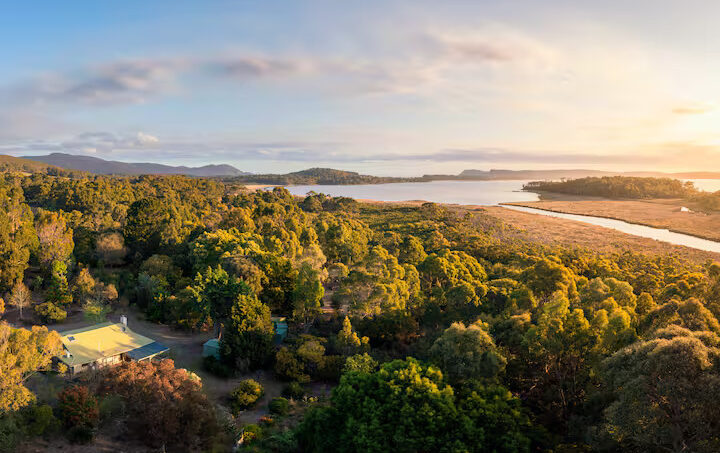 Cloudy Creek Cottage graces the banks of the broad lower reaches of Sainty’s Creek, where the cool mountain waters of Bruny Island’s rainforests flow serenely by. A comfortable two-bedroom mudbrick cottage with an additional unique sleeping loft provides accommodation for six, whilst a separate sleepout for two can be found nestled amongst the trees.