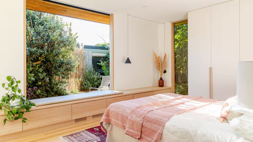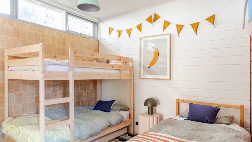 Also on the upper level is a kids bunk bedroom, a full bathroom, and a laundry area. Further down the hallway are two more bedrooms one ensuited and another with direct access to a shared bathroom and a study nook. This zone can be closed off with a large sliding door for added privacy – perfect for families with kids or guests wanting their own space.