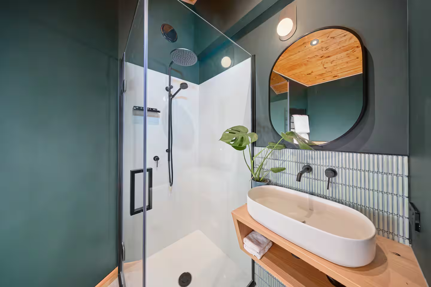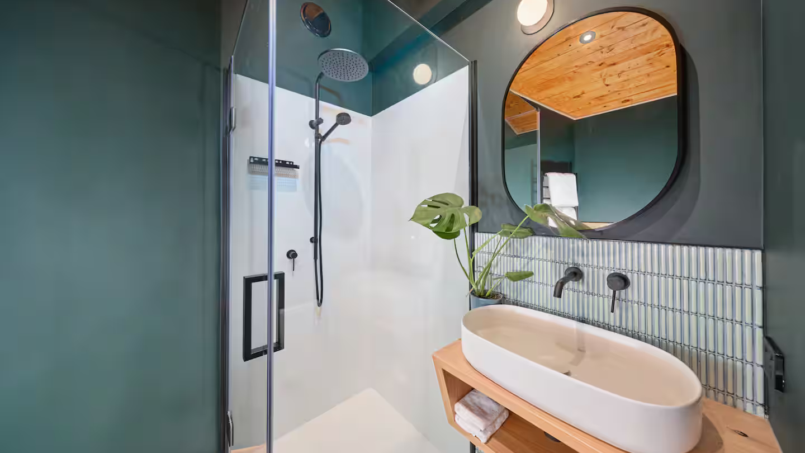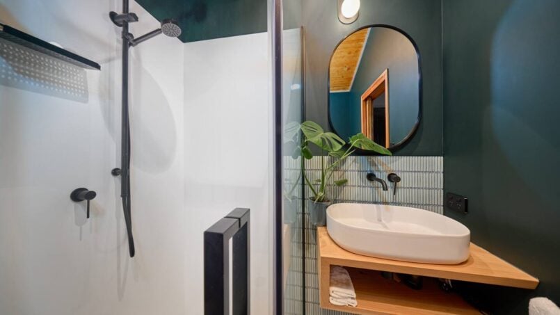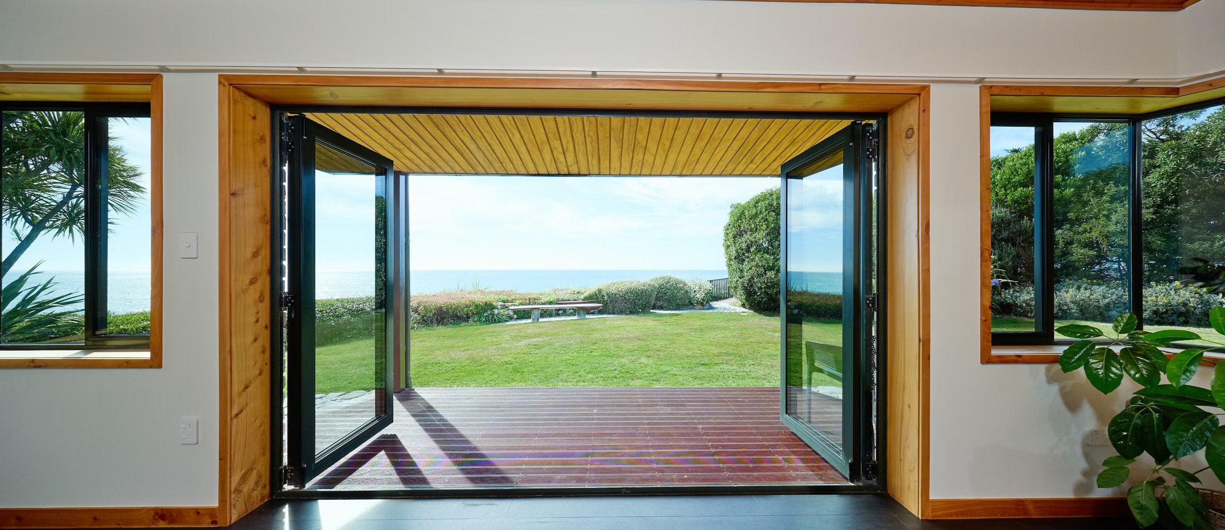The Hapuku Studio is architecturally designed elegance paired with stunning mid-century furnishings. Newly renovated with an open-plan layout, the Studio features a cozy queen-size bed and a fully equipped kitchen with a fridge, gas stovetop, oven, toaster, and kettle. The modern bathroom includes a sleek shower and toilet for your comfort. Step through the French doors onto the deck, where you’ll be greeted by breathtaking views of the gardens and the beach below—an idyllic retreat for relaxation and beauty.